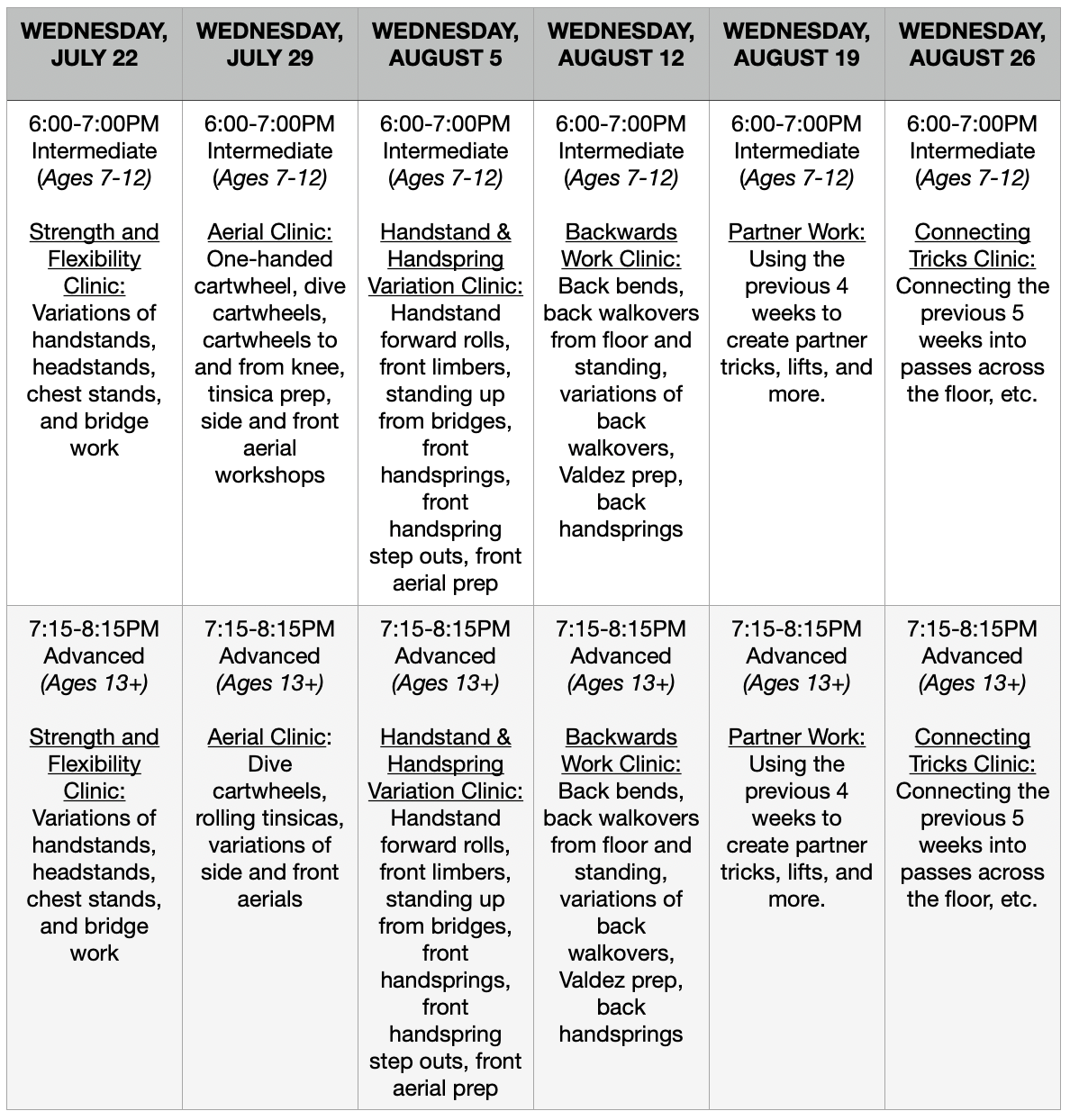 Weekly Acro Clinics