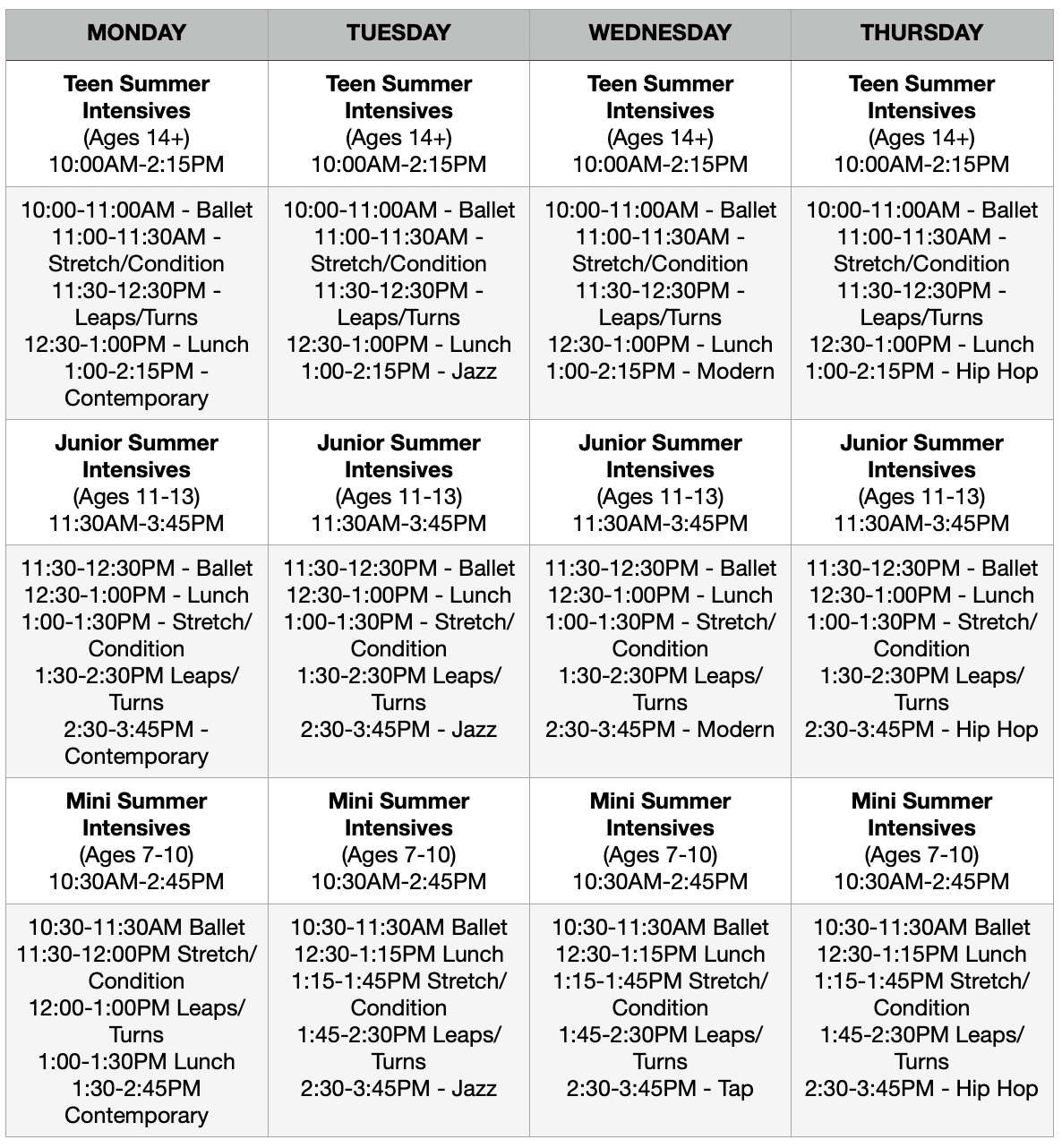 Junior & Teen Intensives: